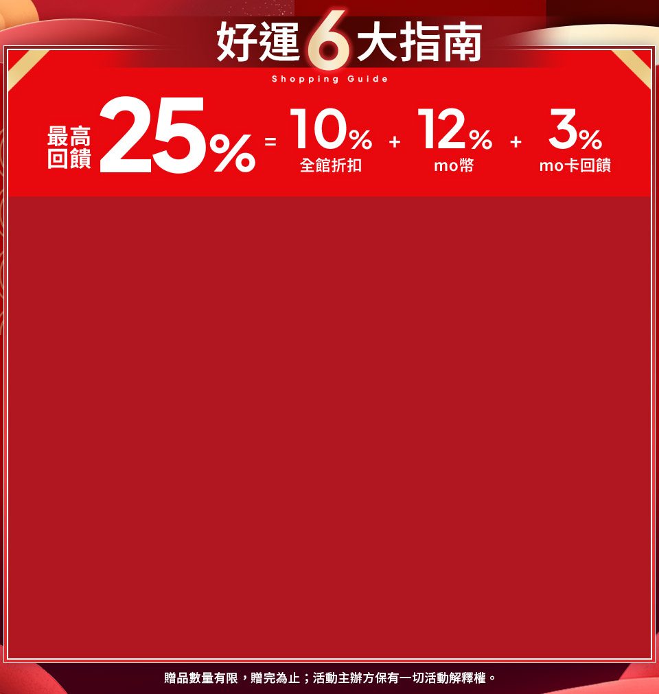 優惠商品數量有限,售完為止。本廣告活動頁商品規格、顏色、價位、贈品如與購物車不符,以購物車標示為準